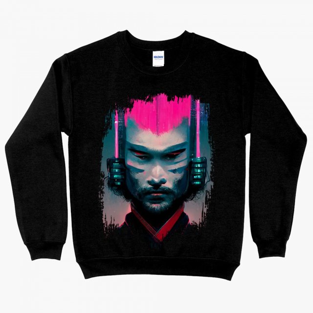 Futuristic Samurai Heavy Cotton T-Shirt – Neon Samurai Tee Shirt – Art T-Shirt