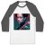 features raglan 3/4 sleeves and a modern fit that is perfect for a day